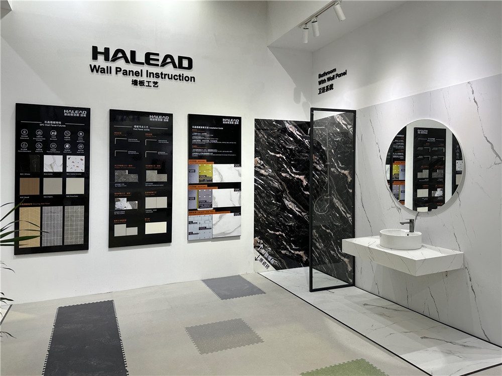 SPC墙板系列采用锁扣拼接技术,可实现无缝拼接。展会现场搭建的“商业空间一体化样板间”中,墙板与地板通过同色系纹理、模块化规格实现视觉延伸。这种“墙地同材”的解决方案,让空间设计从二维平面升级为三维立体。